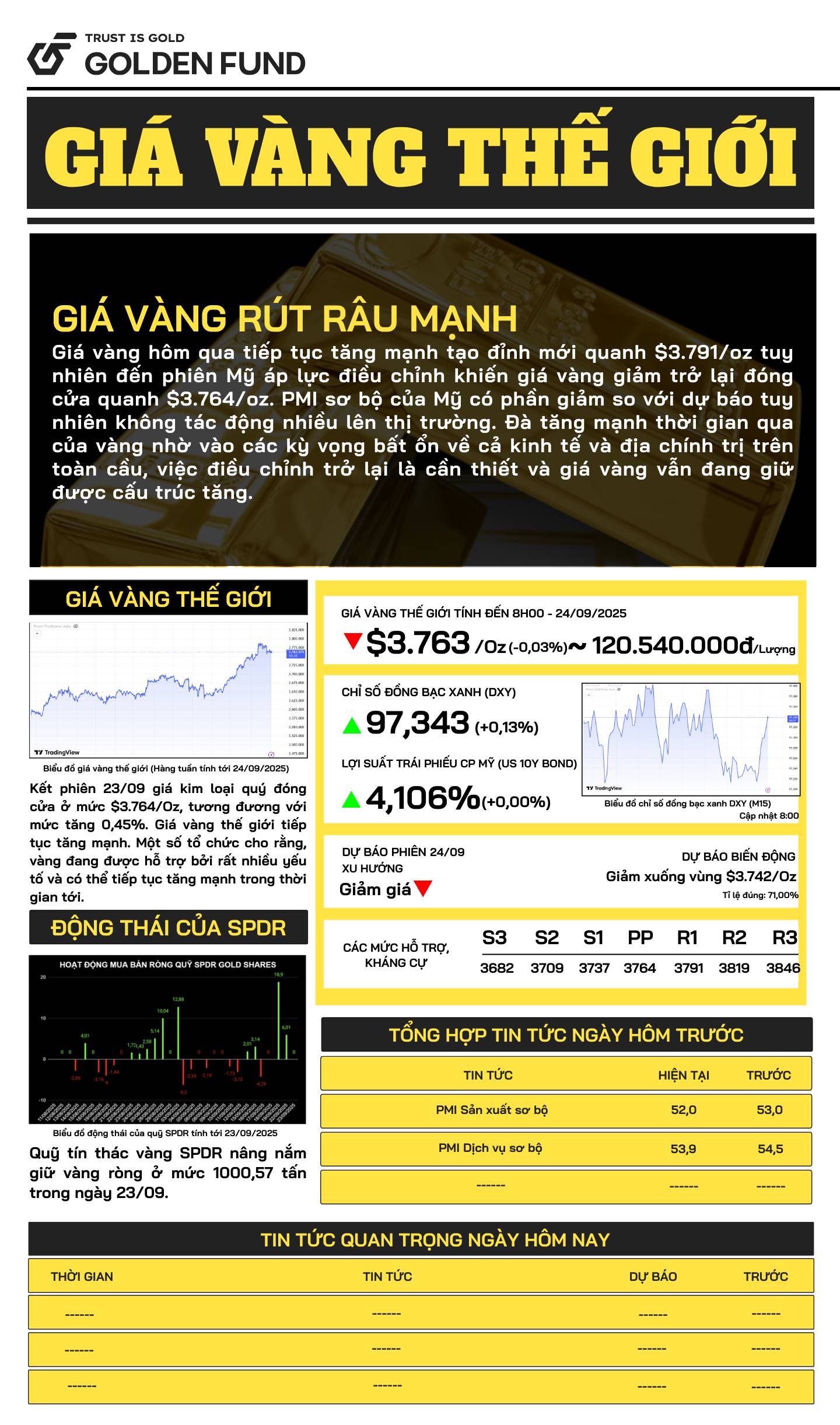 Giá vàng miếng SJC trong nước ngày hôm nay 24/09/2025 dự kiến sẽ giao dịch quanh mốc 133 triệu đồng/Lượng.